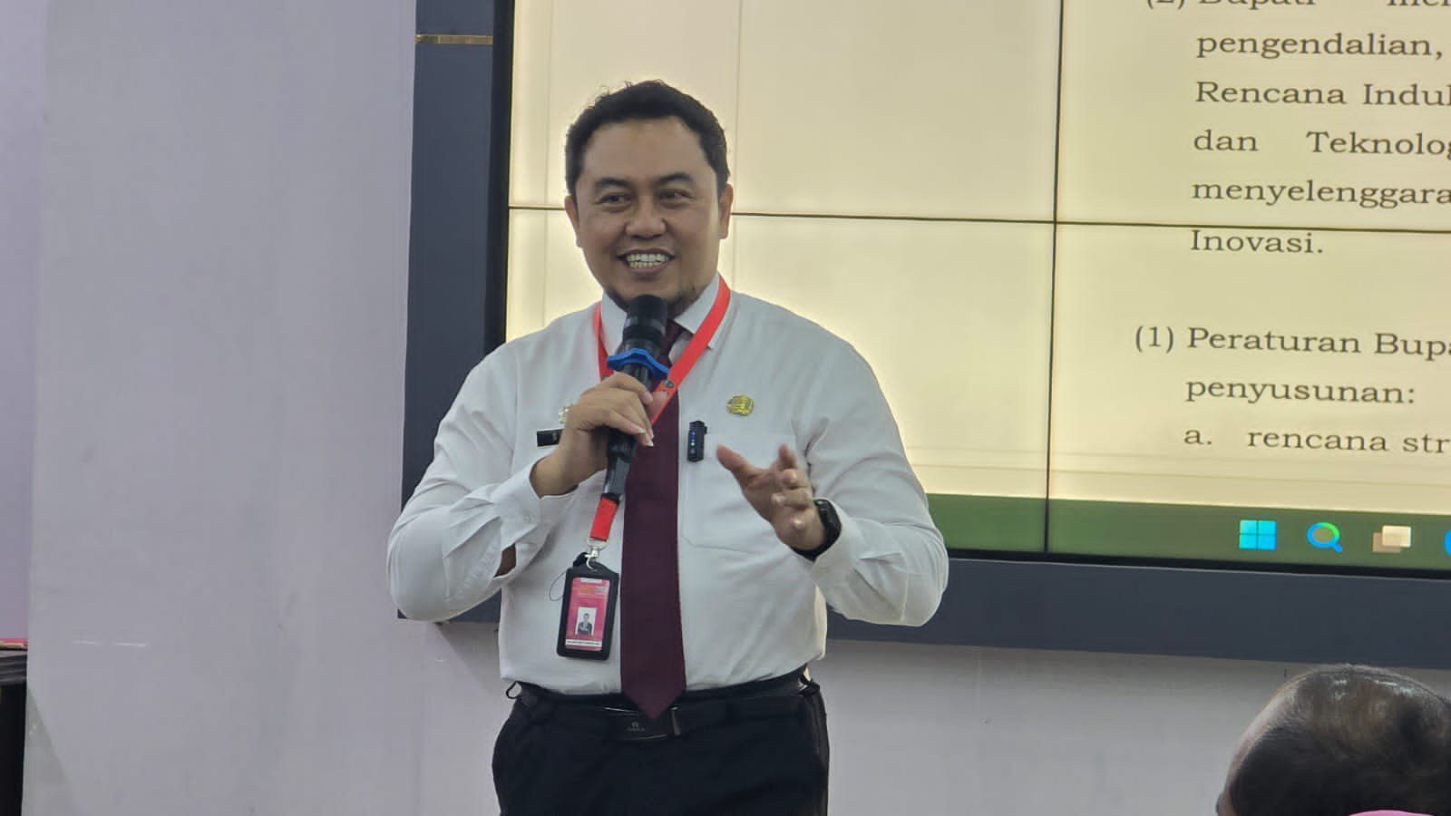 Proyek perubahan tersebut berjudul “Strategi Penguatan Tata Kelola Perencanaan Pembangunan Daerah Berbasis Bukti Melalui Integrasi Hasil Riset”. “Melalui proyek ini, kita berupaya mewujudkan tata kelola perencanaan yang lebih berbasis data dan hasil riset ilmiah, sesuai dengan prinsip evidence-based policy. Dengan demikian, setiap program pembangunan dapat memiliki arah yang terukur dan efektif,” ujarnya pada kegiatan sosialisasi Rancangan Peraturan Bupati tentang Rencana Induk Peta Jalan Pemajuan Ilmu Pengetahuan di Cikarang Pusat pada Kamis (13/11/2025).